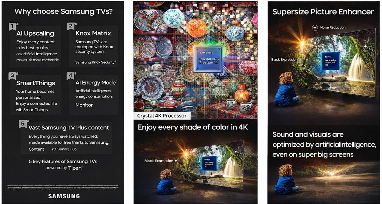 AI-based images suitable for extra-large screens. AI-based upscaling, noise reduction, increased sharpness and intelligent black enhancement technologies deliver exceptional image quality suitable for an extra-large screen.